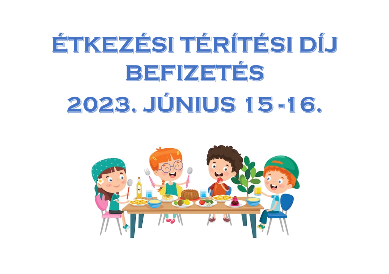 A 2023. MÁJUS ÉS JÚNIUS havi étkezési TÉRÍTÉSI DÍJ BEFIZETÉS IDŐPONTJA: 2023. JÚNIUS 15-16. (csütörtök - péntek).