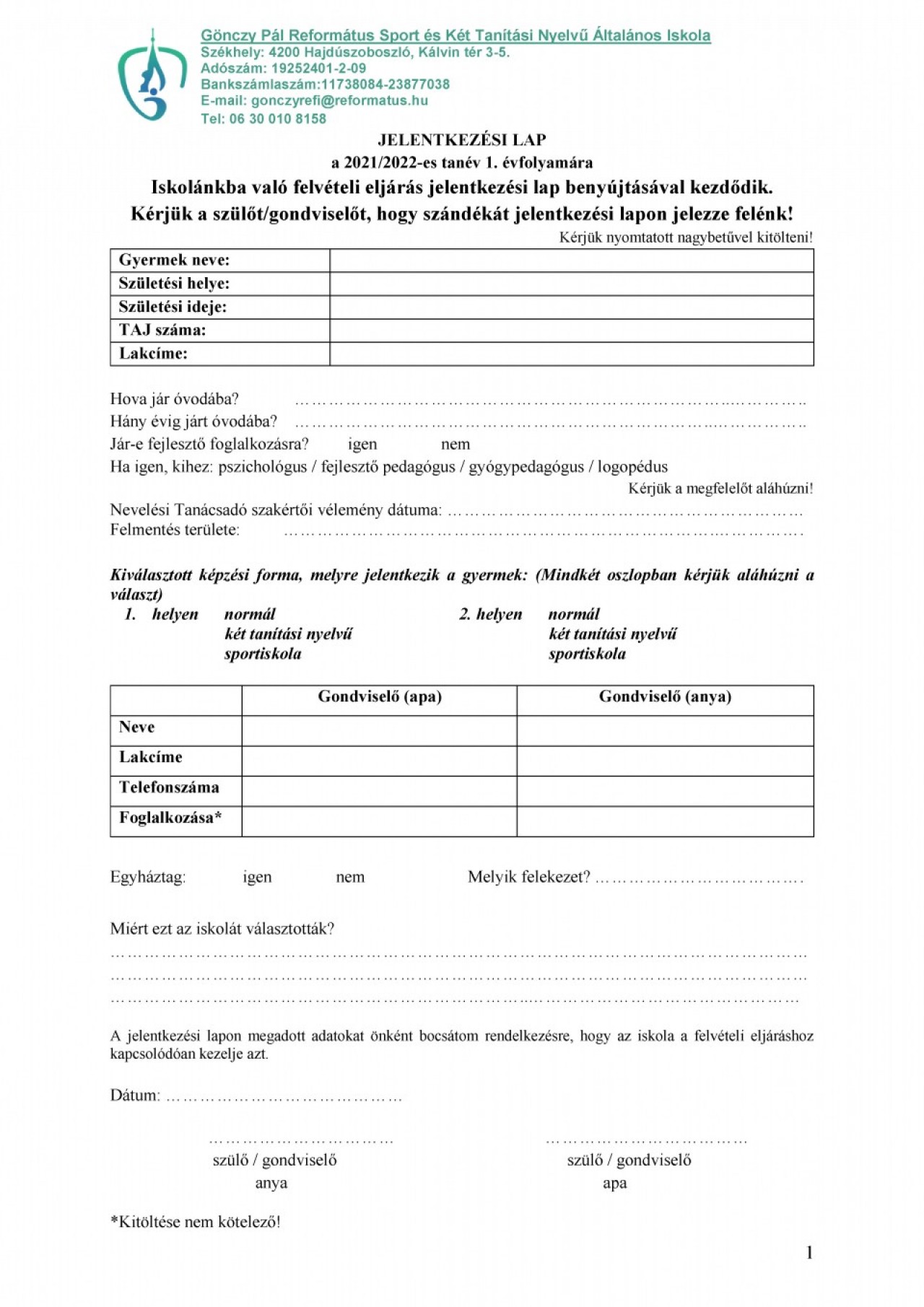 A 2021-2022-es tanévrevaló jelentkezéshez szükséges beiratkozási formanyomtatvány innen tölthető le vagy az iskola portáján kinyomtatva vehető át. Kérjük, a kitöltött nyomtatványt zárt borítékban dobják be a postaládánkba vagy adják le a portánkon! Köszönjük!