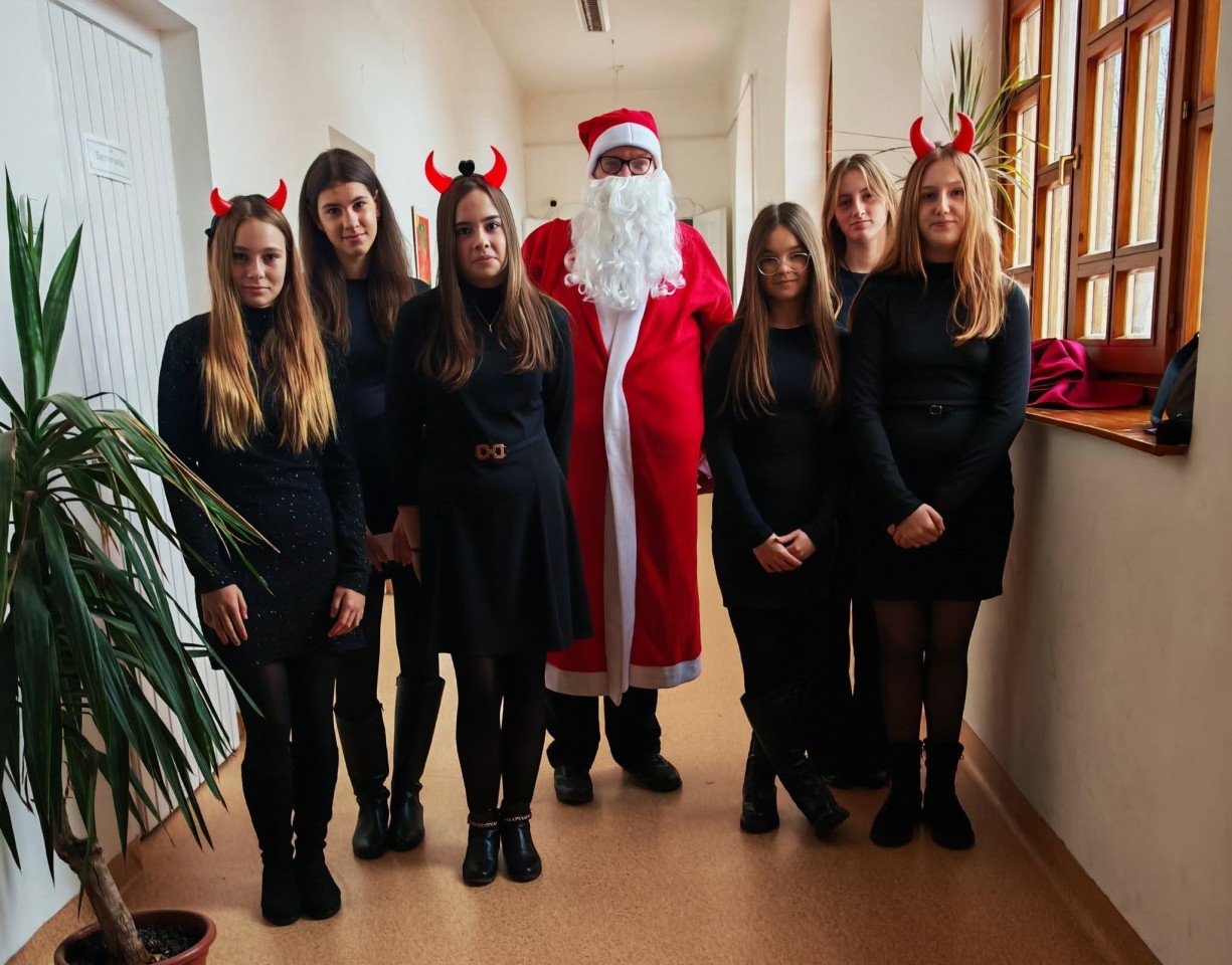 Vidám krampuszaival együtt sorra látogatta meg az alsós és felsős osztályokat.