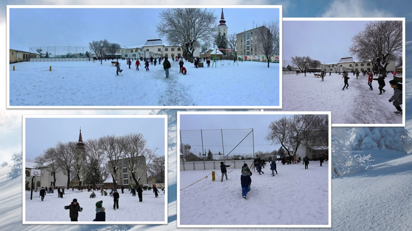 A Gönczy Refi apraja-nagyja nagy örömmel fogadta a havas iskolaudvart: hógolyók röpködtek, hóemberek készültek, a jókedv pedig garantált volt.