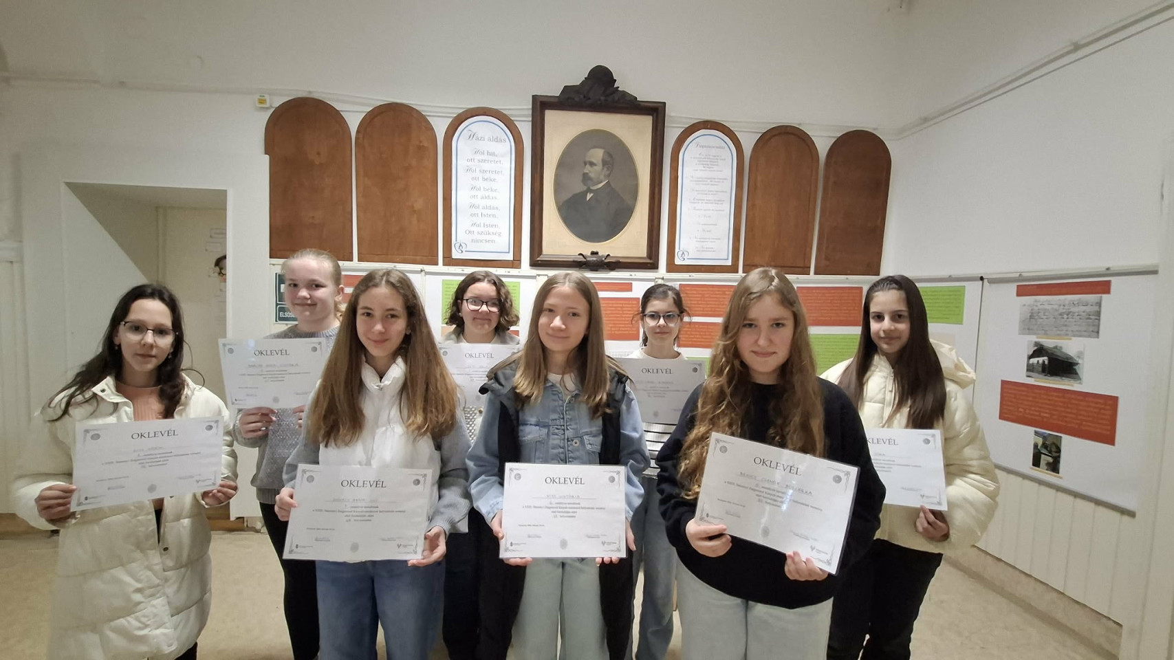 Idén február 25-26-án rendezték meg a XXIX. Simonyi Zsigmond Kárpát-medencei helyesírási versenyt a Magyar Nyelvtudományi Társaság és a Károli Gáspár Református Egyetem Pedagógiai Karának szervezésében. A verseny célja az anyanyelv értékeinek megőrzése, az anyanyelv iránti szeretet erősítése, a tehetséges tanulók támogatása, valamint a helyesírási készség fejlesztése, a helyesírási ismeretek bővítése mellett a digitális írástudás fejlesztése is. A verseny első fordulójának feladatait 1204 intézményből 19968 fő oldotta meg. Intézményünkből az 5-8. évfolyamon 25 tanuló mérettette meg magát, közülük 8 diák jutott a 2. fordulóba: Barcag Anna Viktória, Benics Csenge Boglárka, Kiss-Erdei Bíborka 5.a, Kiss Viktória, Tóth Dóra 6.a, Kiss Noémi, Kovács Anna Lili 7a, Czető Luca 8.a osztályos tanulók. Felkészítő pedagógusaik: Kedves Tünde, Szemán Erzsébet és Vágóné Nádas Márta. Szívből gratulálunk minden versenyzőnek és felkészítő tanárának!