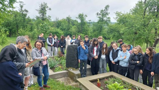 Ez a nap különösen megható és tanulságos volt. Nagygalambfalván megkoszorúztuk Kányádi Sándor sírját, majd találkoztunk testvérével, Róza nénivel, akinek visszaemlékezései mély benyomást tettek ránk. Ezután ellátogattunk a helyi általános iskolába, ahol az ottani tanulók egy kis műsorral készültek számunkra. A találkozás őszinte és szívhez szóló volt – a közös nyelv és kultúra pillanatok alatt hidat épített a gyerekek között. A közös játék, beszélgetés és együttlét hosszú ideig emlékezetes marad mindannyiunk számára.